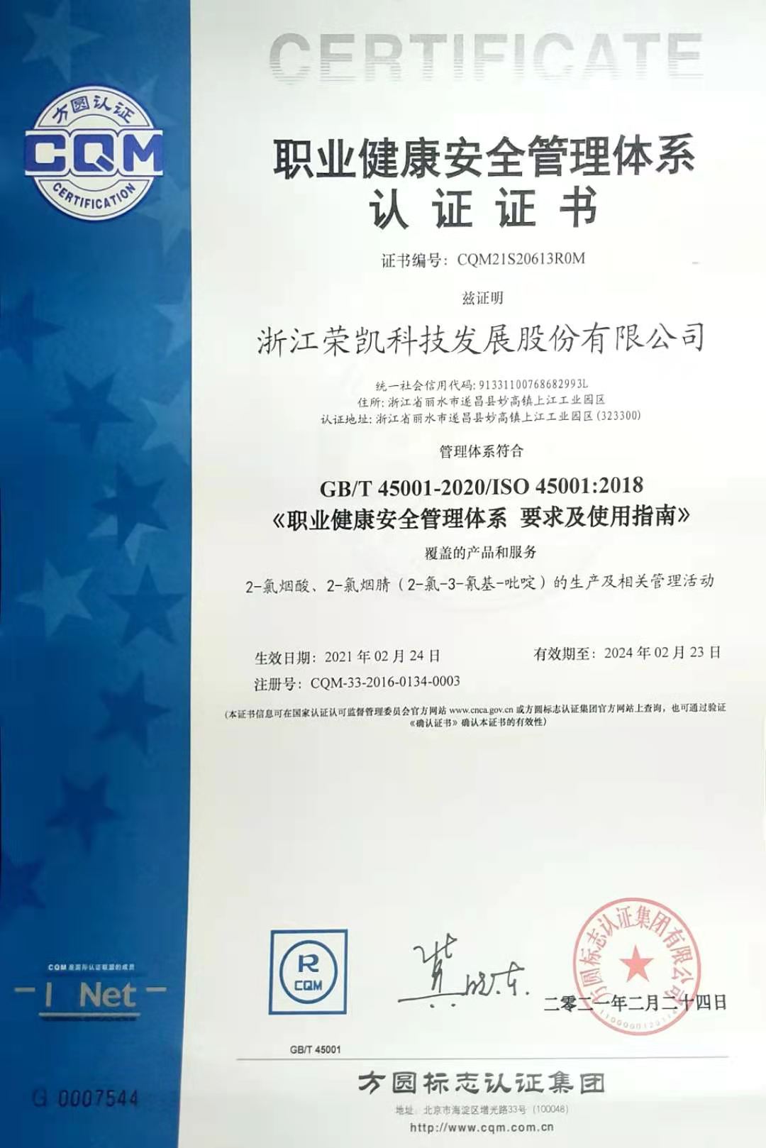職業(yè)健康安全體系認(rèn)證證書(shū) |
