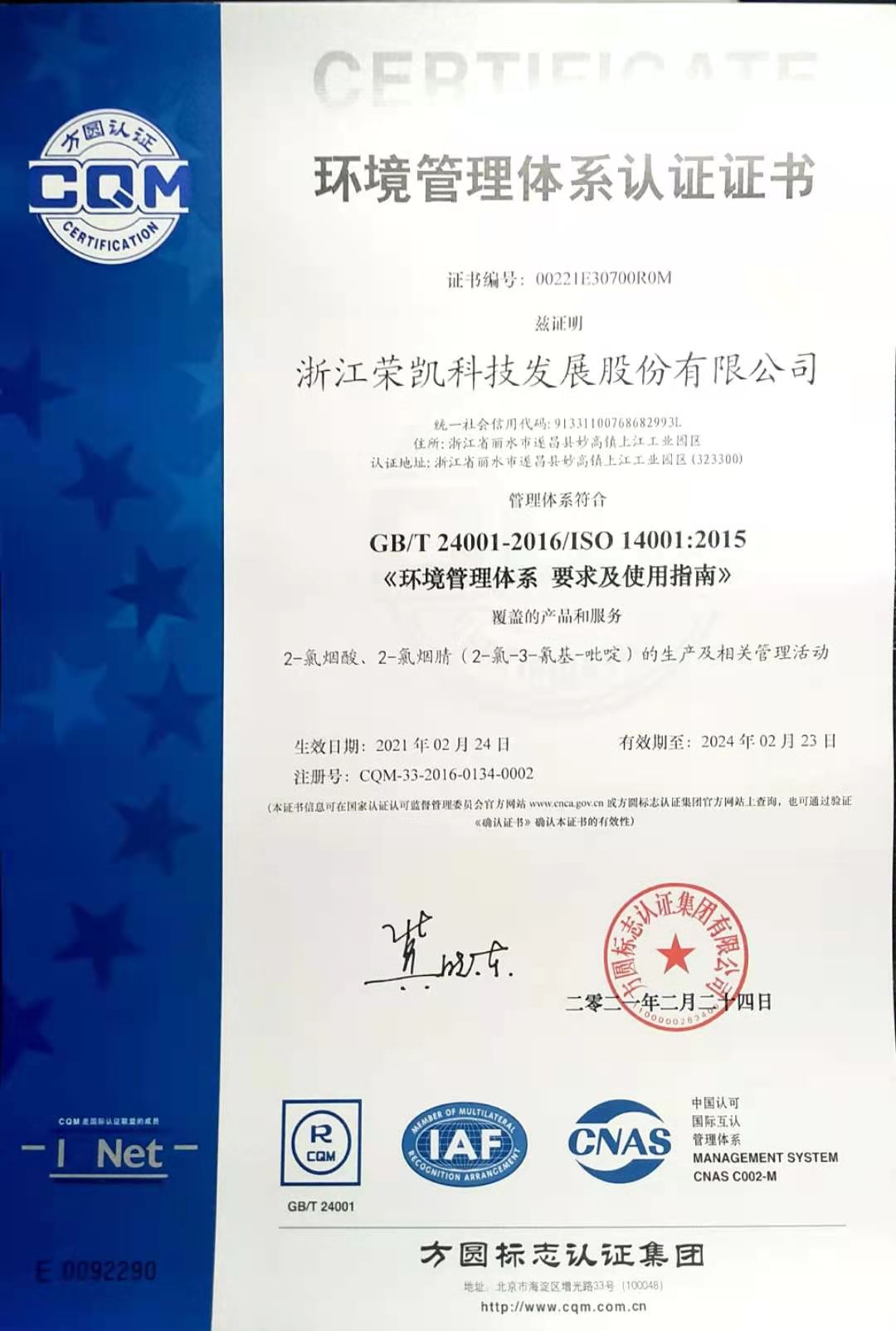 環(huán)境管理體系認(rèn)證證書 |