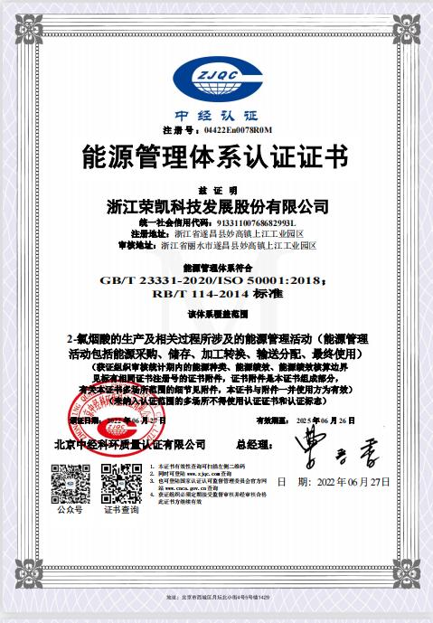 浙江榮凱科技發(fā)展股份有限公司 能源管理體系(證書) |